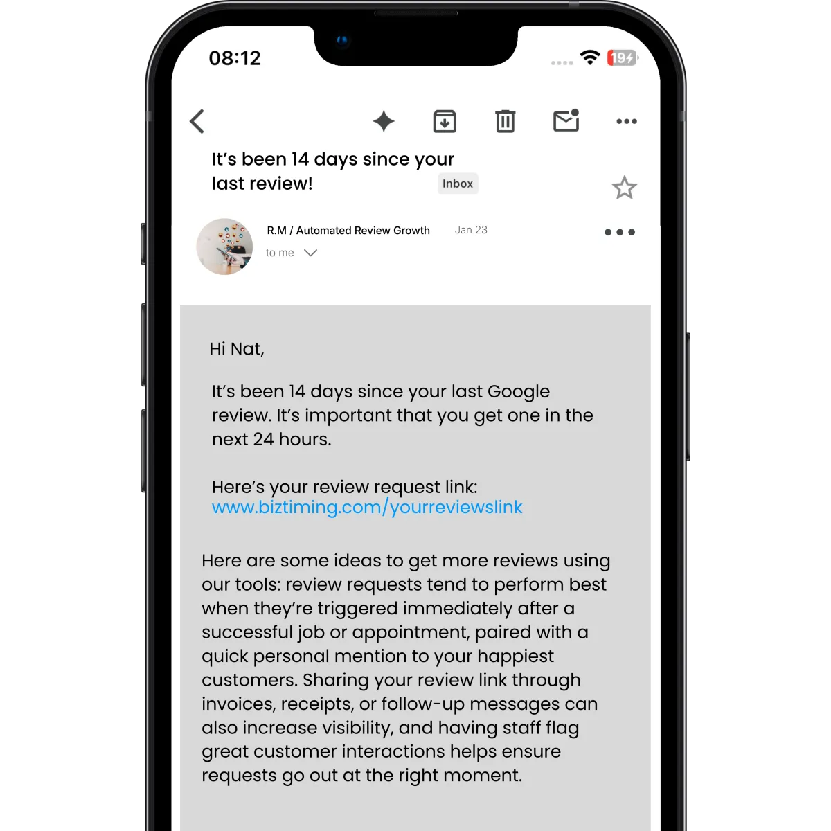 We can safely re-engage past customers who never left a review, helping you unlock reviews from your existing database.
