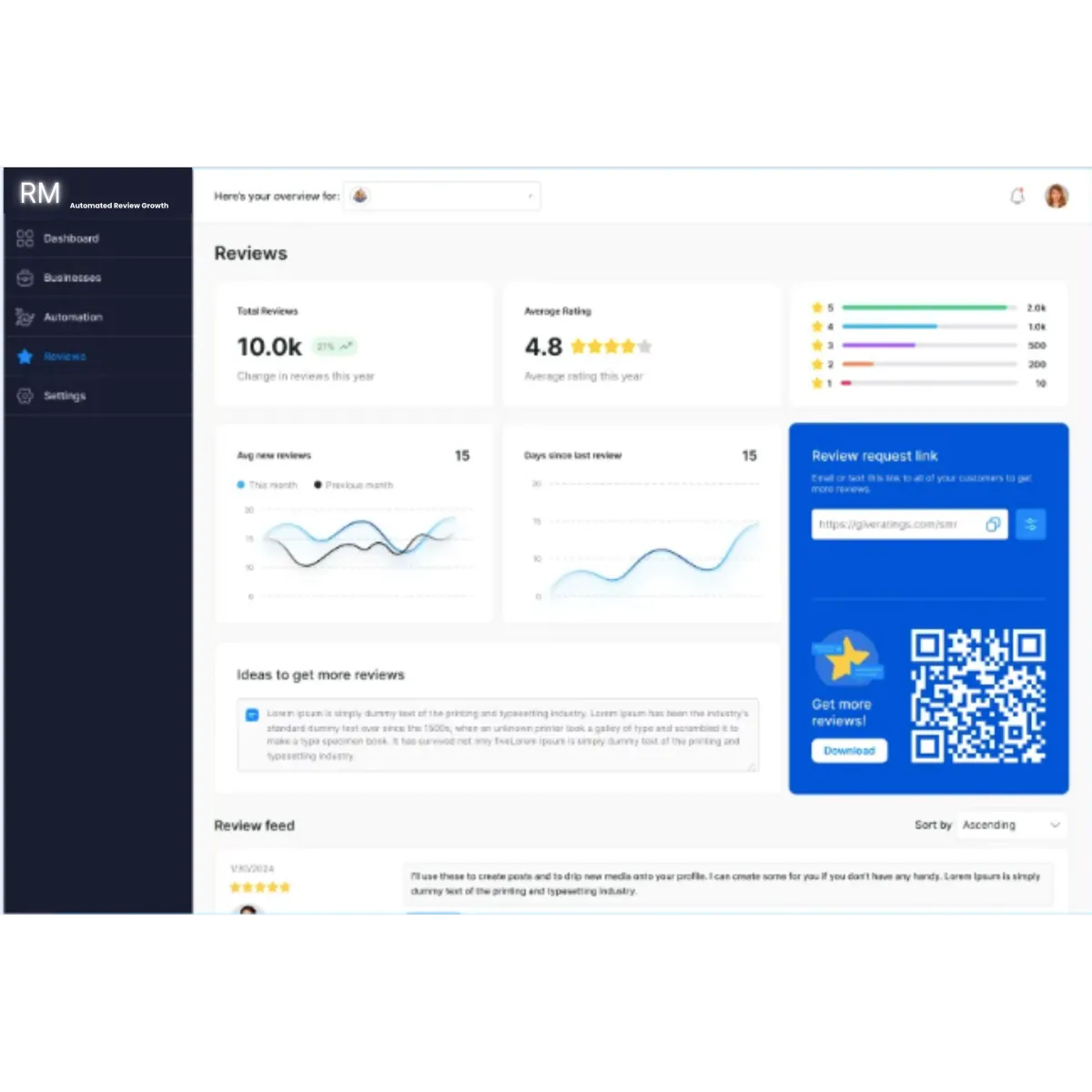 Sit back and watch your Google reviews increase with our intuitive dashboard.