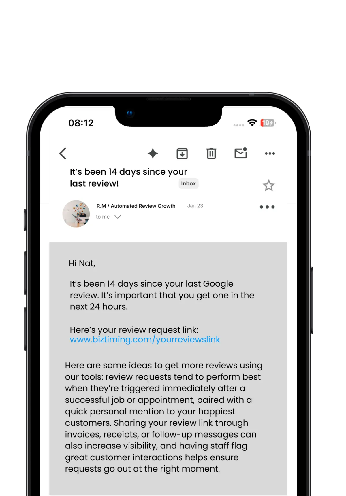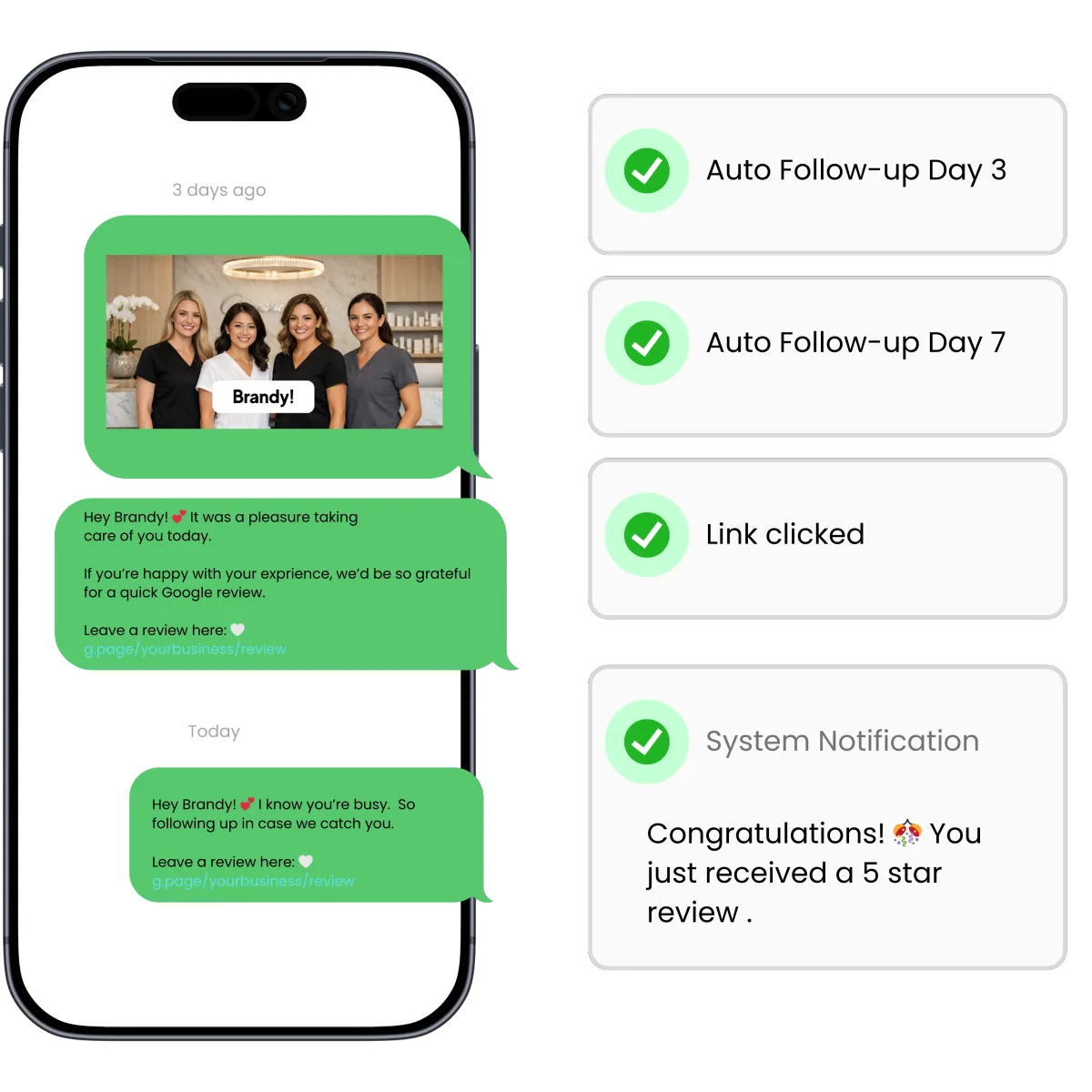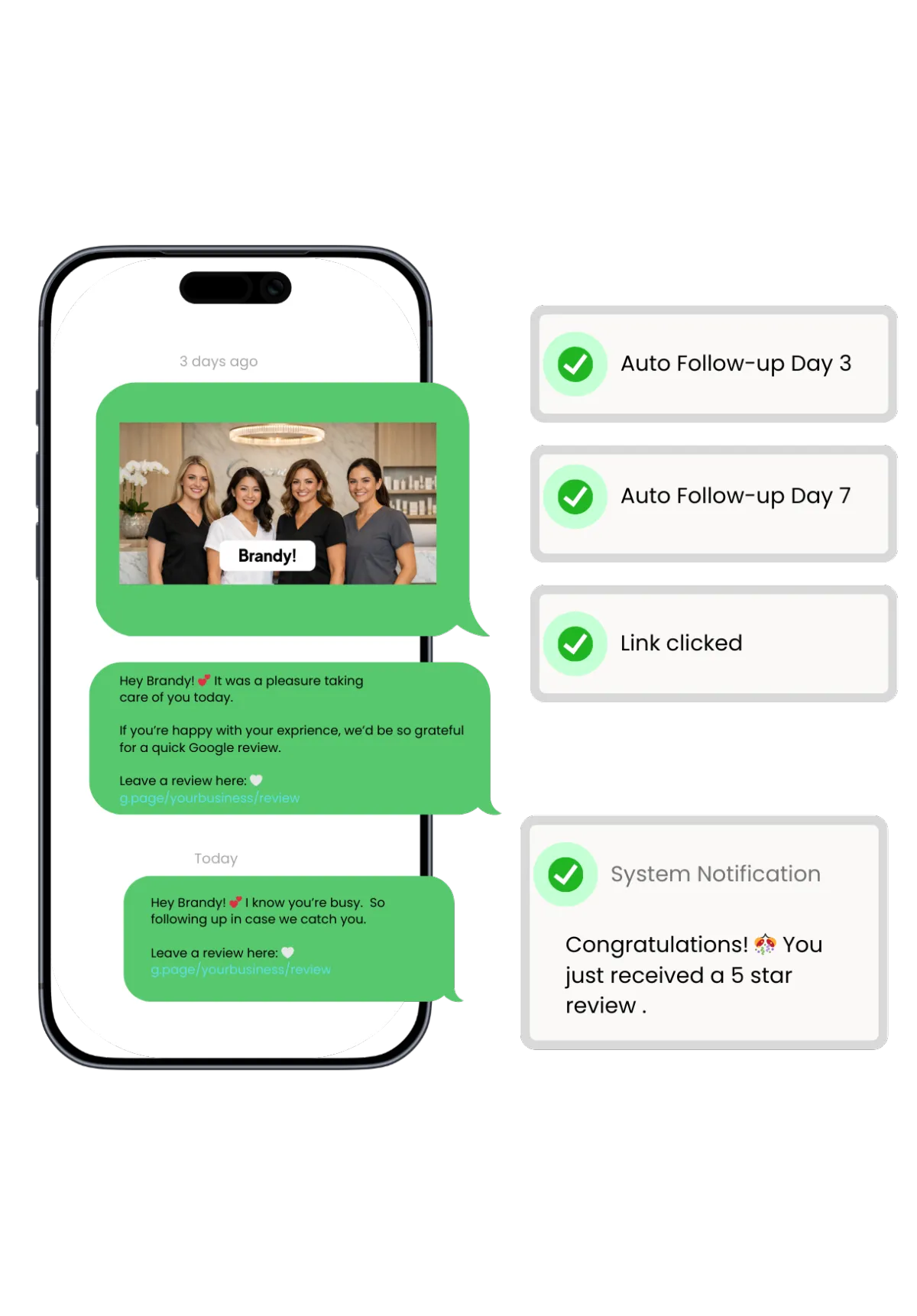 Our system automatically sends review requests to customers after every interaction via text or email.